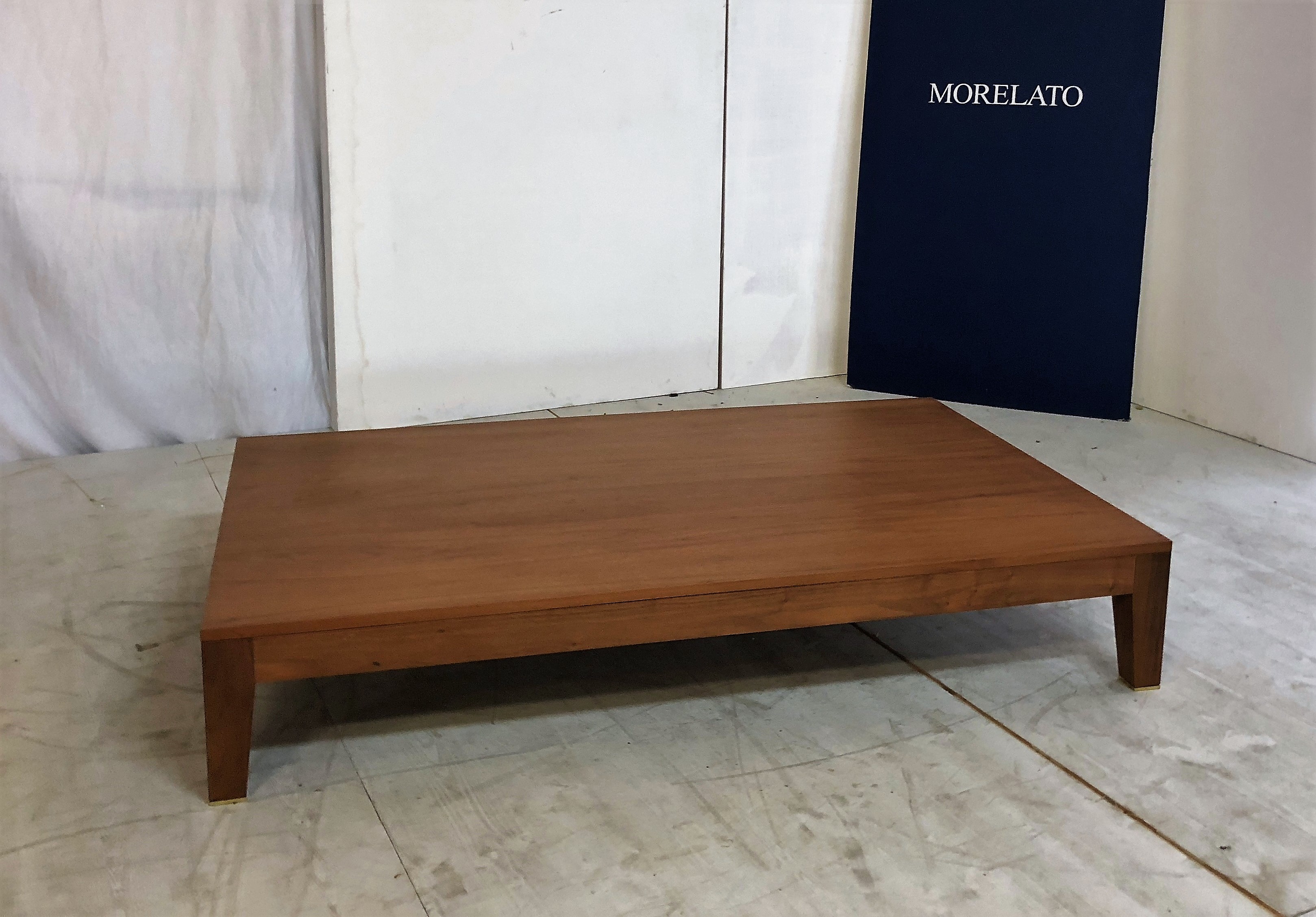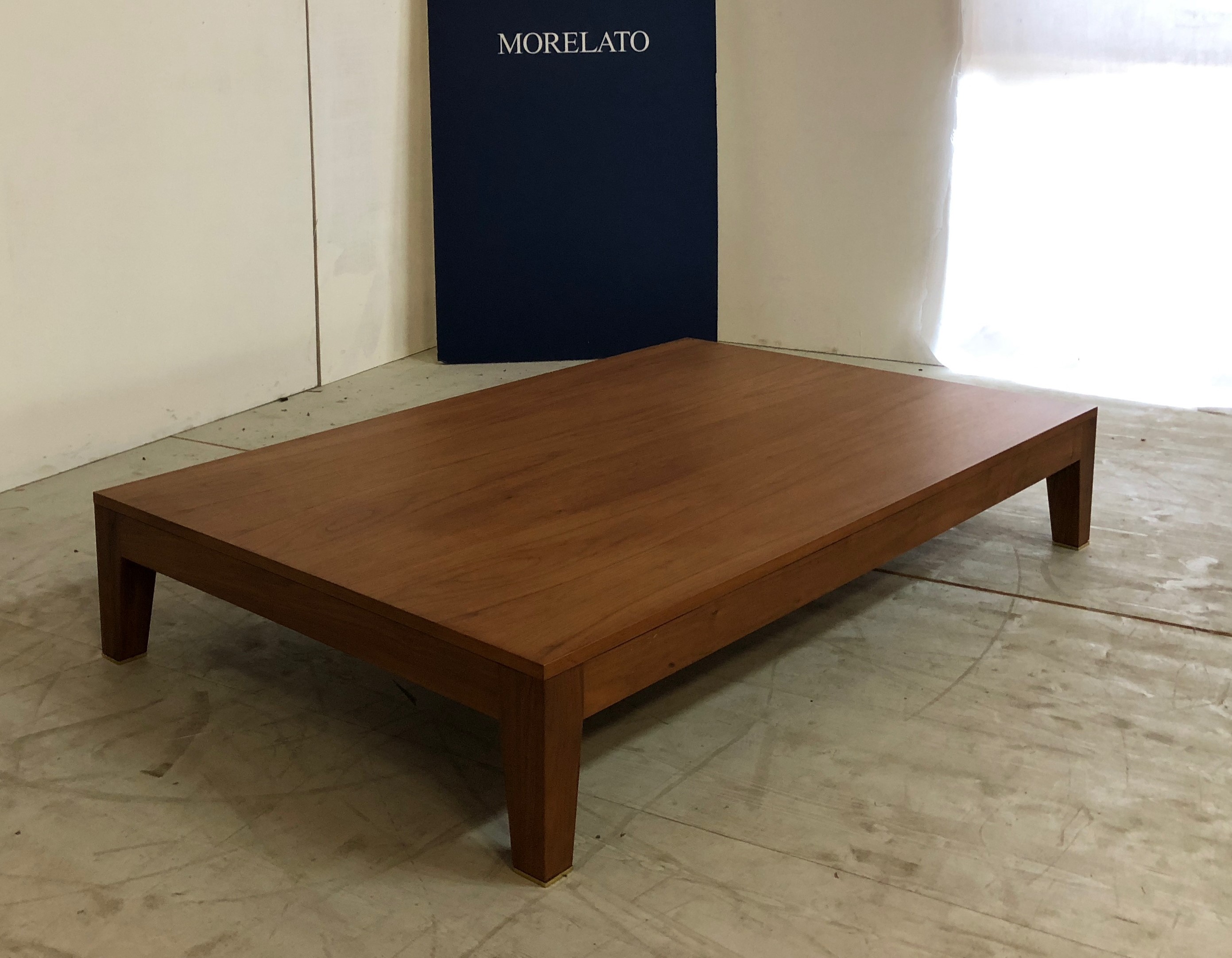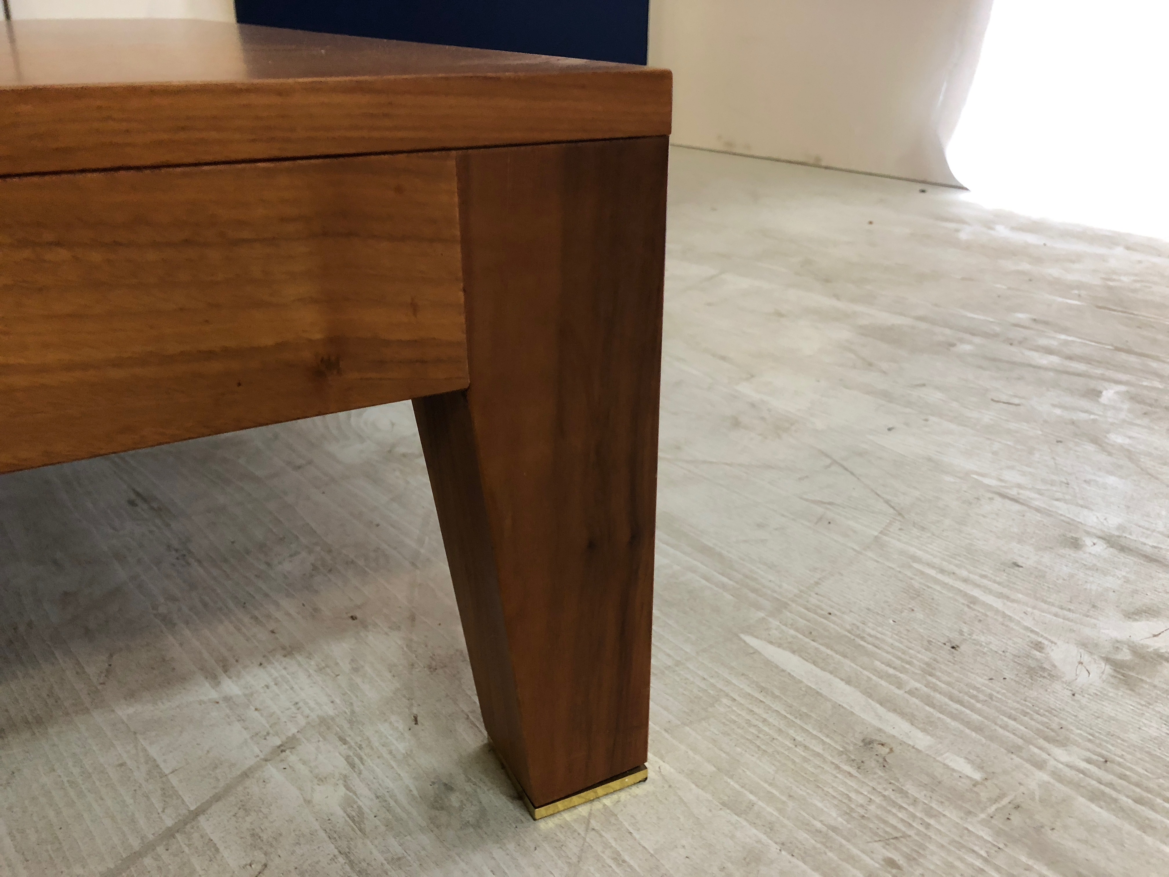 Tavolino rettangolare in noce massello con piedini rifiniti in ottone.