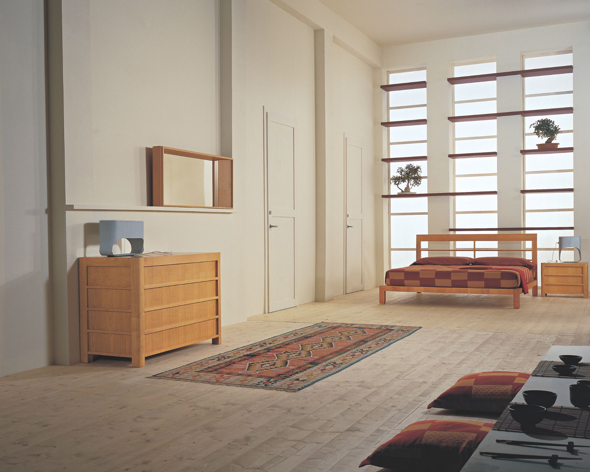 Coppia di comodino con cassettone abbinato in stile 900. Realizzati in legno di ciliegio, le strutture di questi arredi presentano cassetti incavati e particolare bordino in rilievo sulle maniglie. Gambe a sezione quadrata con spigolo smussato e pregiata venatura sulle superfici. Disponibili ultimi pezzi al grezzo con finitura a scelta. Nella galleria foto i colori disponibili. Misure comodino: L 60 P 40 H 50 cm Misure cassettone: L 135 P 55 H 82 cm