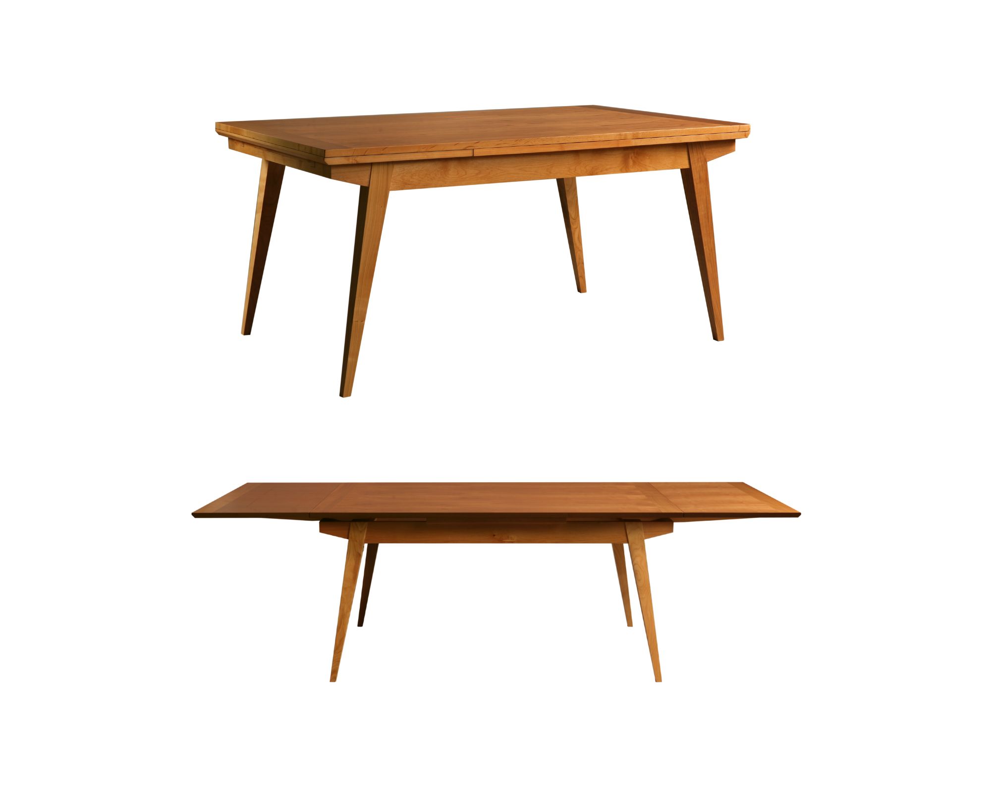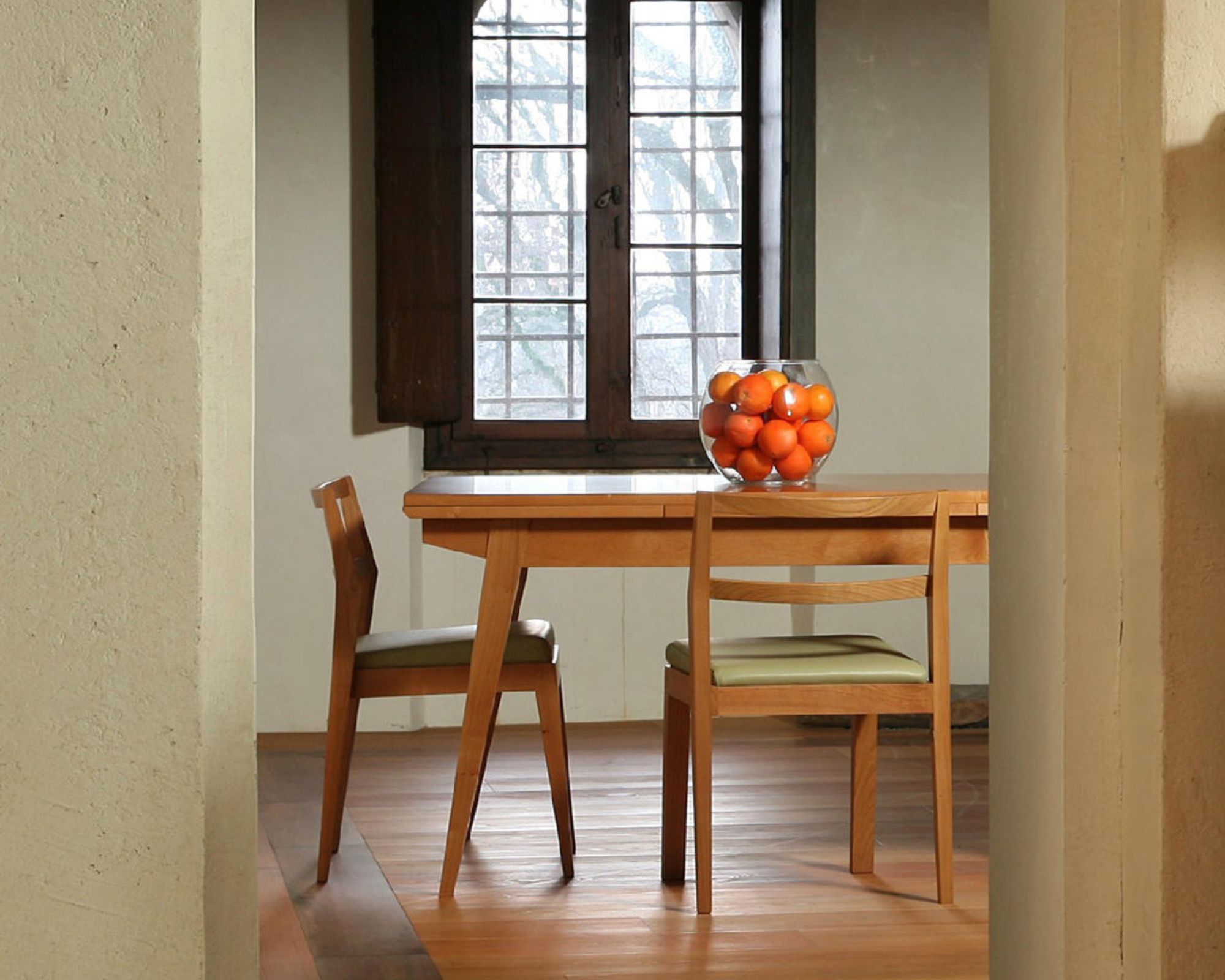 Proposta di sala da pranzo composta da 1 tavolo con piano allungabile e 6 sedie, in legno di ciliegio. Le sedie presentano struttura impilabile. Rivestimento della seduta a scelta. Pezzi al grezzo da rifinire con finitura a scelta. Nella galleria foto i colori disponibili su legno di ciliegio. Misure sedia: L 49 P 53 H 78 cm Misure tavolo: L 160 P 100 H 78 cm